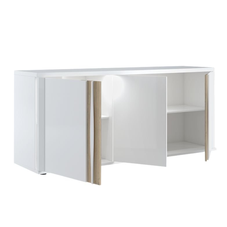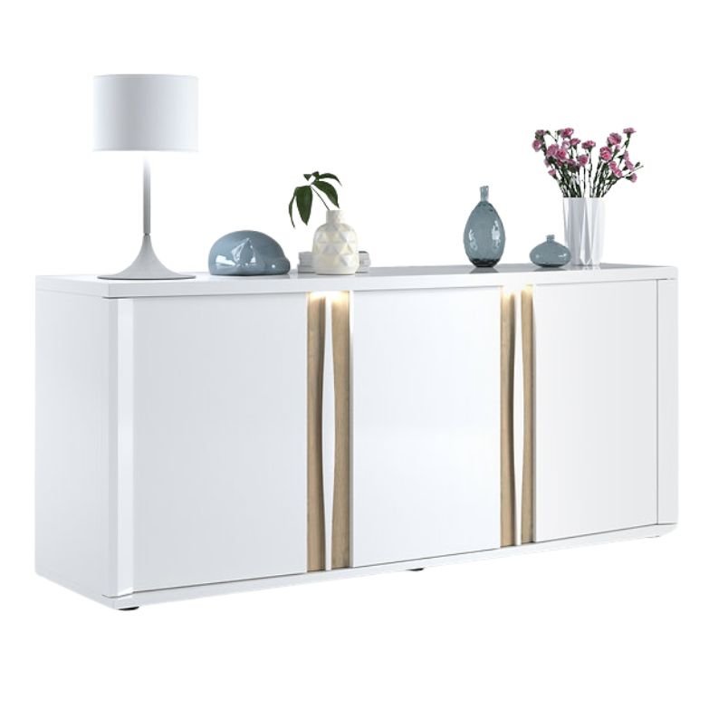 O Aparador 3 Portas Insta combina design moderno e funcionalidade para transformar qualquer ambiente. Destaca-se pelo acabamento em branco lacado brilhante e carvalho natural, trazendo uma atmosfera elegante, acolhedora e contemporânea. Com amplo espaço de arrumação, é ideal para sala de jantar ou sala de estar, mantendo tudo organizado com estilo. Versátil, intemporal e sofisticado, adapta-se facilmente a diferentes estilos de decoração, do clássico ao moderno.