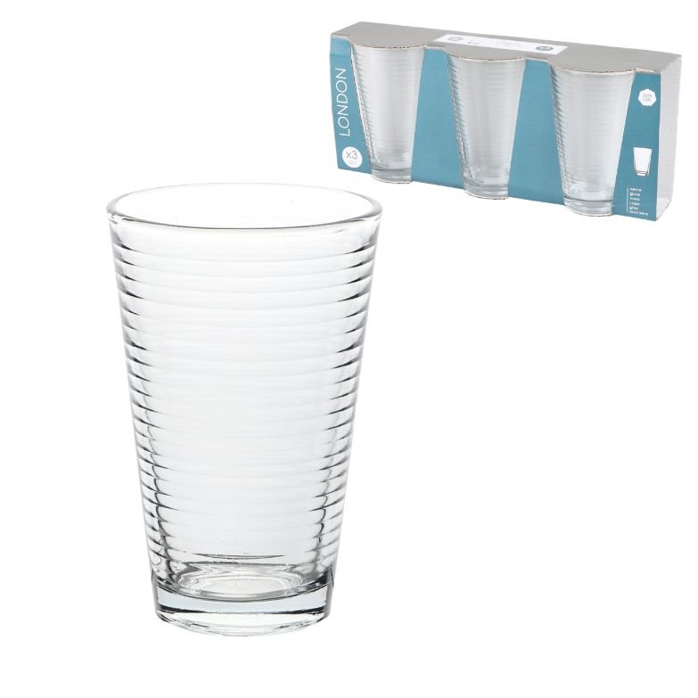 Conjunto com 3 copos de 30cl, perfeitos para o dia a dia ou para receber convidados. Fabricados em vidro resistente, combinam design moderno com praticidade e elegância. Ideais para água, sumos ou refrigerantes.