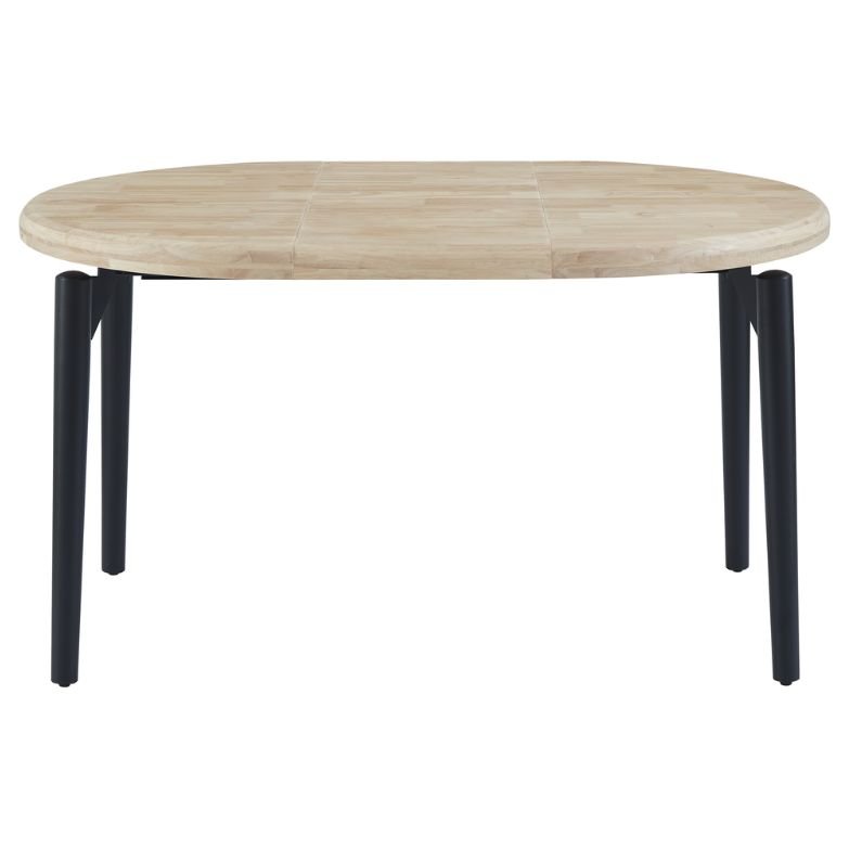 A mesa de jantar redonda extensível combina elegância e funcionalidade para qualquer sala de jantar. Possui tampo e extensões em madeira de carvalho, material resistente e durável, que garante um acabamento natural e sofisticado. Inclui duas extensões individuais de 40 cm, permitindo ajustar facilmente o tamanho da mesa para 140 cm ou 180 cm, ideal para receber mais convidados com conforto. Os pés em metal preto oferecem estabilidade e um toque moderno ao design.
