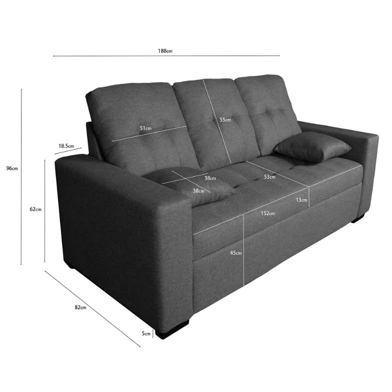 Transforme a sua sala com este sofá de 3 lugares moderno e elegante, estofado em resistente tecido Malmo cinza. Com estrutura de madeira robusta, assentos com molas e espuma de alta densidade, garante conforto duradouro. Detalhes com botões e almofadas decorativas incluídas completam o design sofisticado.